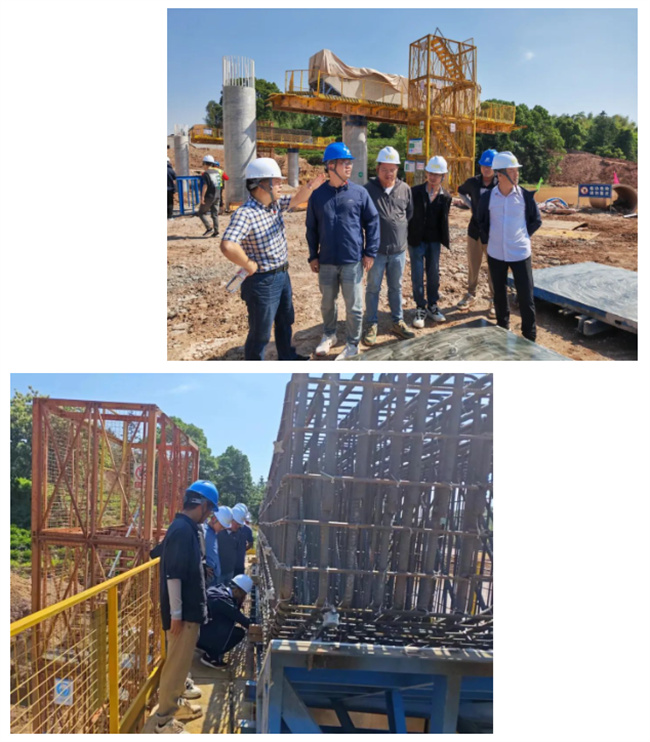 在會后交流中,大家對樁基成孔偏位糾正措施、立柱模版安裝固定、人員安全防護、蓋梁模版體系抱箍設(shè)計與安裝、支座墊石澆筑安全母繩設(shè)置等施工技術(shù)展開了交流討論。